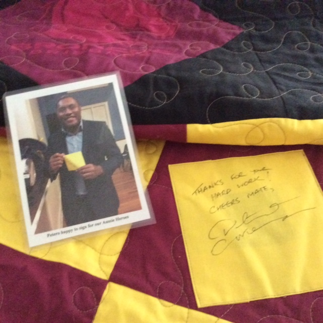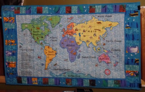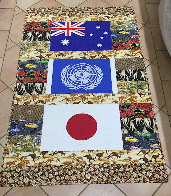 Quilt top created by the ladies from WPH, UN flag by Su J and quilted by Keryn.