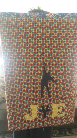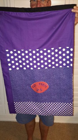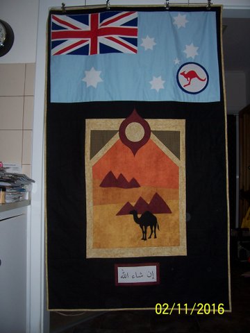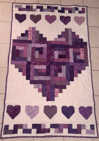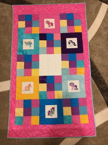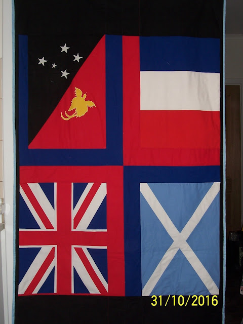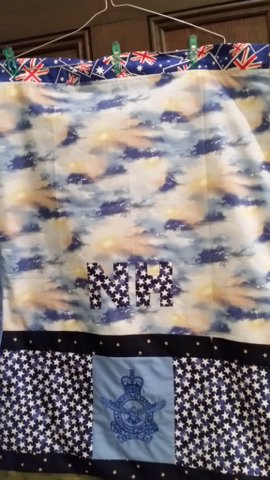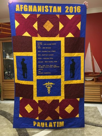 Kay D created the embroidered blocks and Bridget created the quilt aroind them. A name has been covered in the centre so as not to give away the surprise….