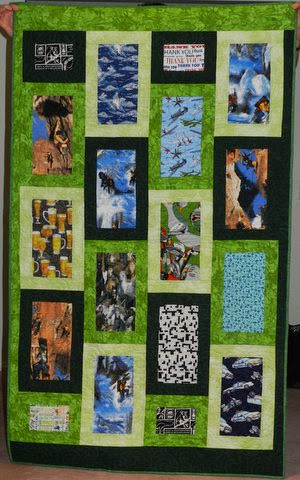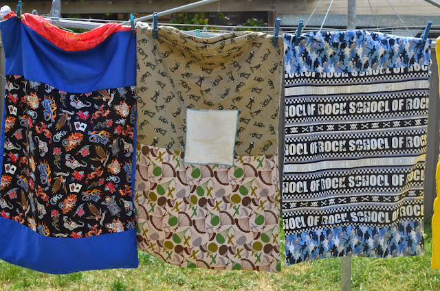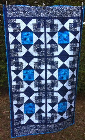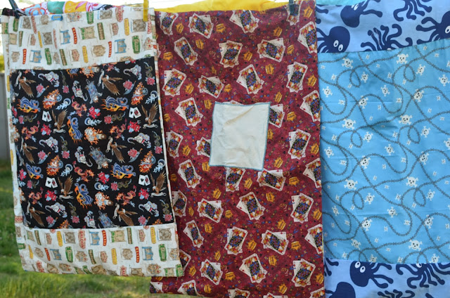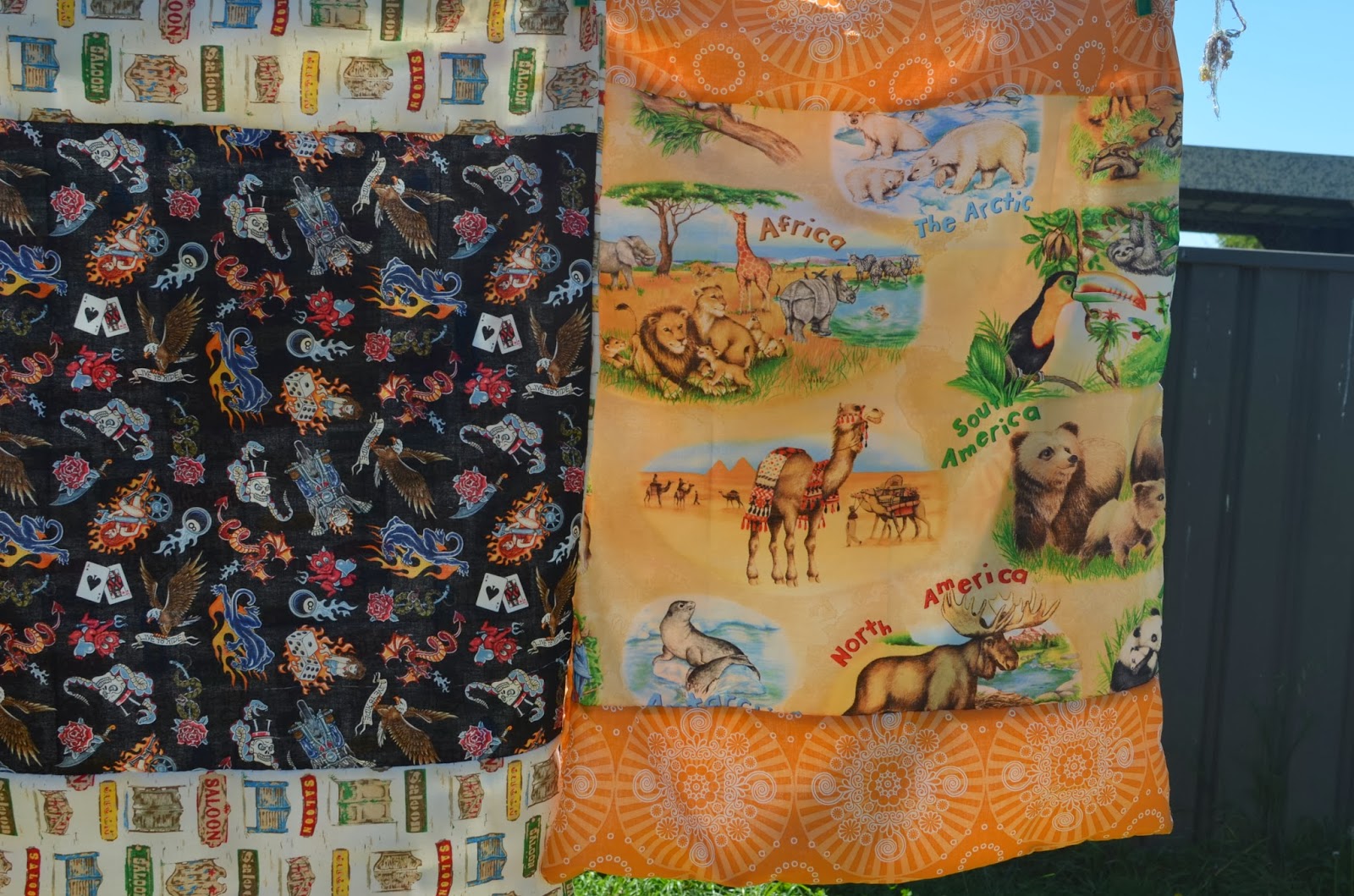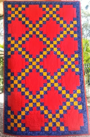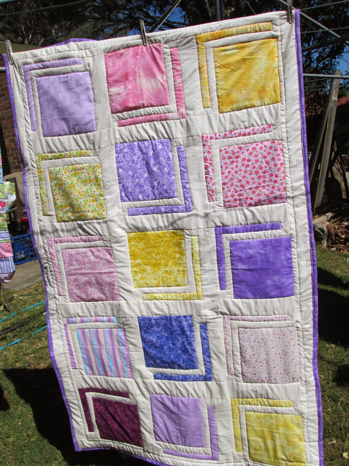 Help! It is getting so hard to remember who had made or donated which quilt top. I am getting better at keeping those records but this is one that slipped through. It arrived the day that Stephanie was here for a sewing day and it was huge. Clever lady that she is, she took it home and re-worked it and we ended up with a quilt and a matching laundry bag. If you recognise this as your work please let me know so that I can edit this post and give you credit.