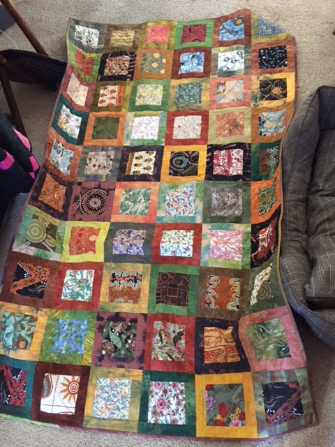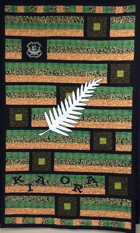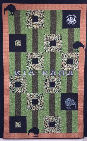 I took two of the quilt tops sent in by the North of the Yarra Quilt Group and sent them on to the lovely ladies at the Fabric Arts Studio in Coffs Harbour. They worked their magic on them and “Kiwi-fied” them, then another of their number quilted them. I am told that The Kiwi quilt was done by Jo and Margaret. The Silver Fern quilt was done by Di and Judith. All the girls at the Fabric Art Studio in Coffs Harbour contributed ideas, materials, encouragement and cheek!