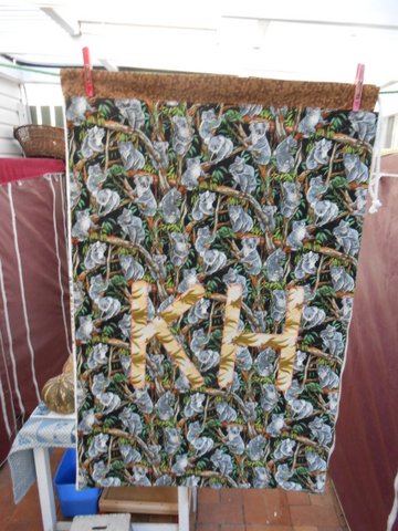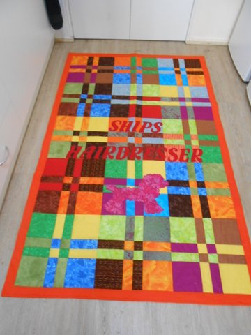 Once again, I wish I could tell you who made this top. I added the words to make it appropriate for the requets and Debbie quilted it.