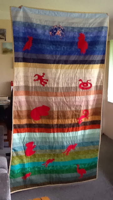 Another top by Meg and Stephanie T quilted this one after she painted on the map of Aus!