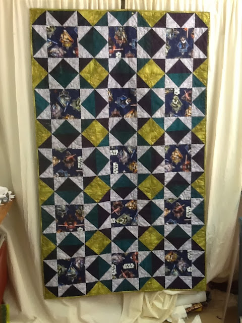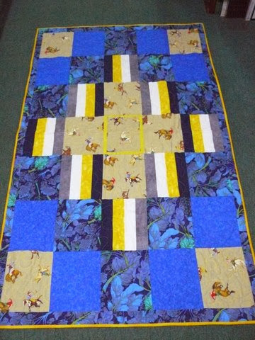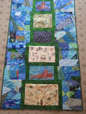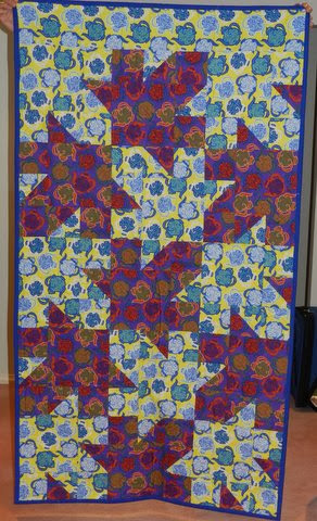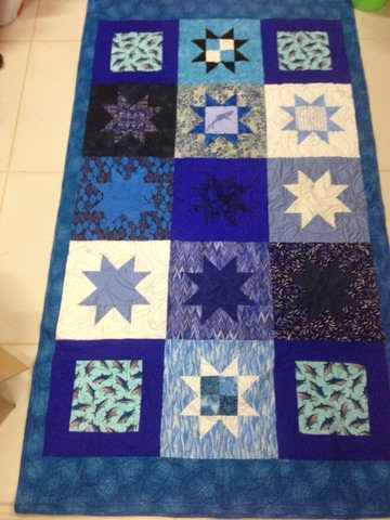 Do any of you remember the Blue Sharks Mystery Quilt you sent in blocks for? Well here it is in all its glory.