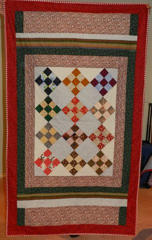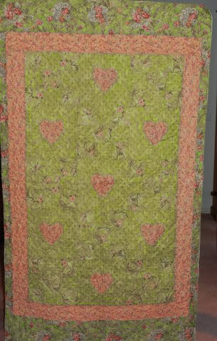 Remember those pretty pink square? Debbie put them together. I hope you caught the post earlier this week showing this quilt being happily modeled by its cute new owner.