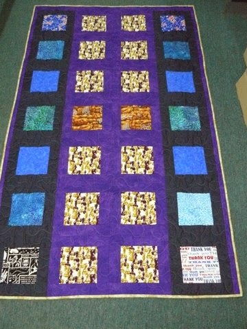 Meg made the quilt top and Camden Country Quilters quilted it – can you see that they also added the word “thank you” at the top. LOVE IT!
