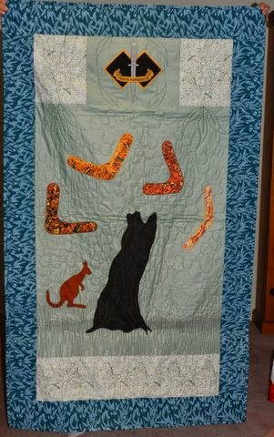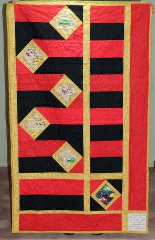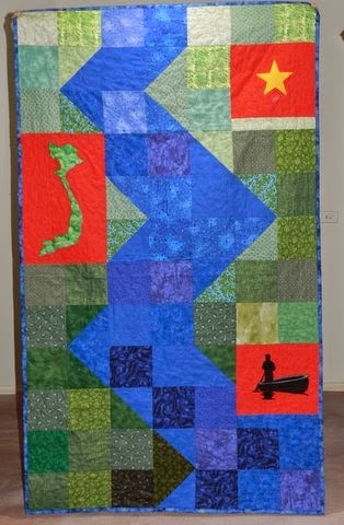 Stephanie T created the map of Vietnam for this one, I did the boatman and the flag and Lynn created the meandering river down the middle. Quilted and bound by Robin and Evelyn