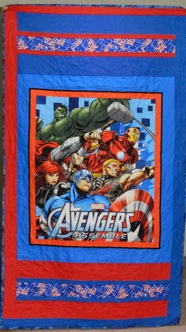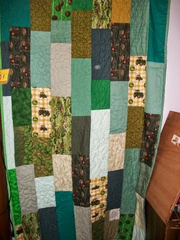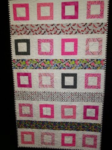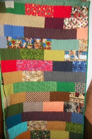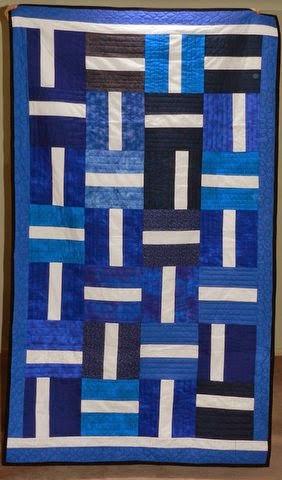 Andrea created this quilt top but it needed to be lengthened so I sent it to Lynn to do her thing and then Robyn and Evelyn quilted and bound it.