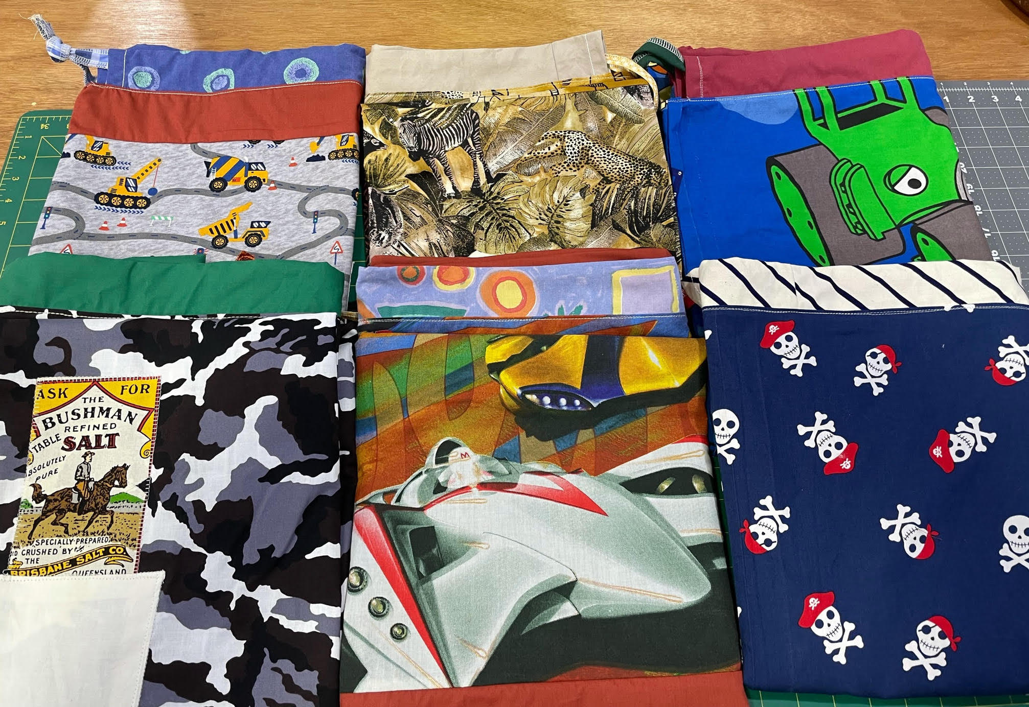 What a fabulous and large collection of quilts and laundry bags on the way to their new homes.