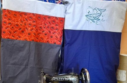 love the quilts and laundry bag, excited to see the old Singer machine in the photos. All my quilts are sewn on my Singer treadle. love it!!