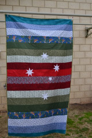 A simple strippy quilt made by Anne becomes something special when she added the Southern Cross.