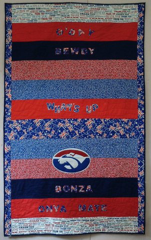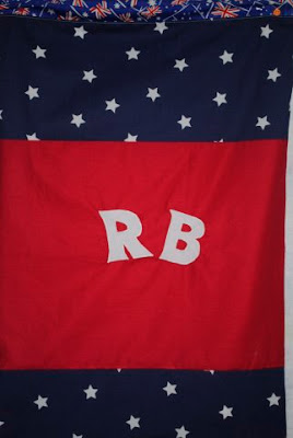 This is a joint effort.  I cut the strips and added them to some of the BOM strips. Carolyn sewed them together at a sewing day in Penrith and then I added the Bulldogs logo.  Liz B then quilted it and sent it off.