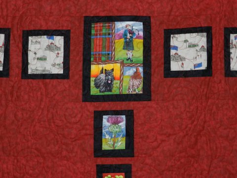 This was pieced by Wendy C (on the left) and the embroideries were made by Patricia S (on the right).