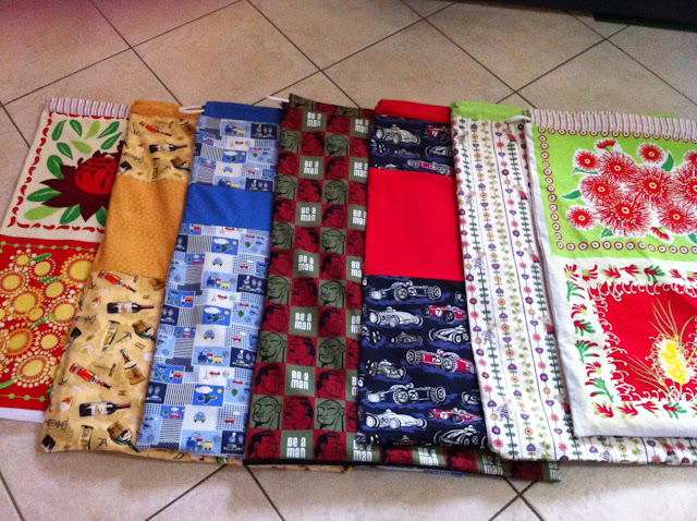 Grab a cuppa and sit back and enjoy this week’s bumper crop of quilts and laundry bags.