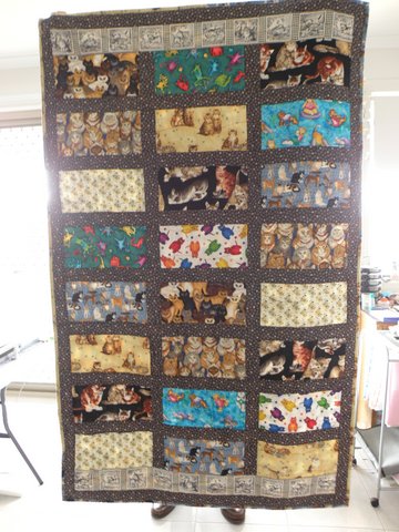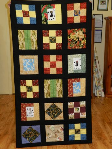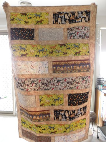 Stephanie T created this – you can’t see well but the feature fabric is nursing dogs and this is bound for an appropriate recipient.