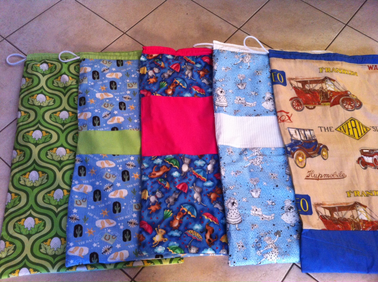 Pam S, whose son is one of our recipients, has beavered away at some laundry bags.