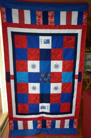 Finally I can show you this quilt.  I posted this to the Chaplain from HMAS ANZAC on the 7th of December last year. It should have been posted by the 1st but I just could not make it – I always make sure that everyone else is sorted before the chaplains but the chaplain was sure it would catch up to him.  Well it did, eventually!