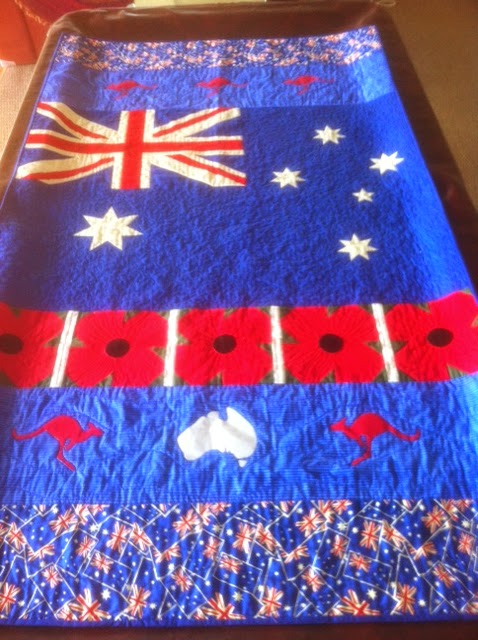 Yesterday I spent time with the Dolphin Quilters from Old Bar. Louse was kind enough to be my gracious hostess for both nights and Diane and her husband Tom, whose adult children are all serving members, hosted Louise and I for dinner on Wednesday night. Thanks to all for their hospitality. These ladies are pictured here with some of their awesome Aussie Hero Quilts. The photo does not do these justice. Thanks muchly ladies.