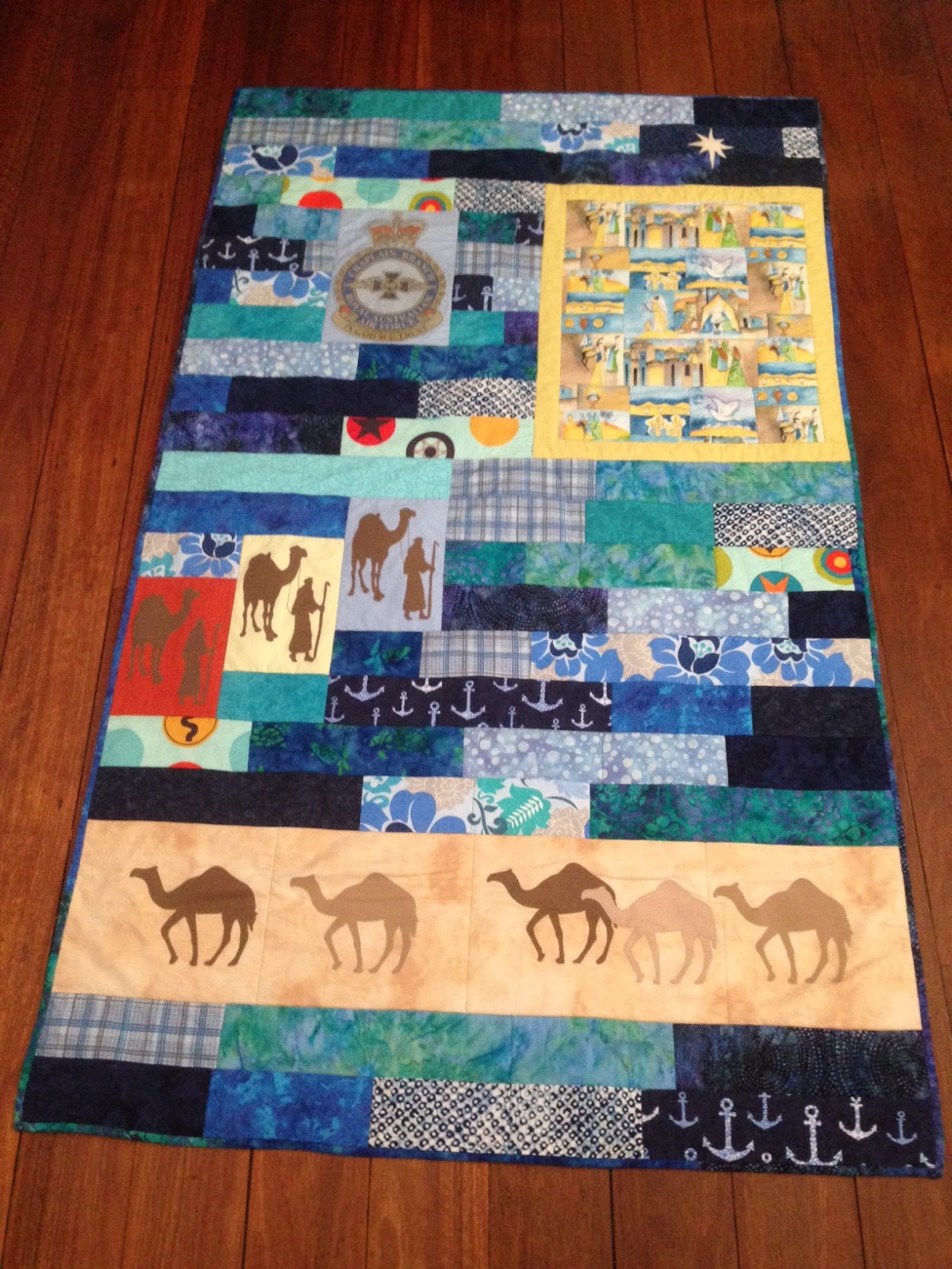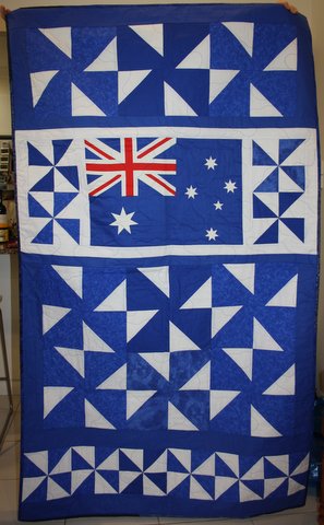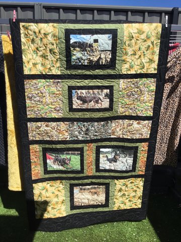 Brian airbrushed the picture, Helen created the quilt top and Keryn quilted it