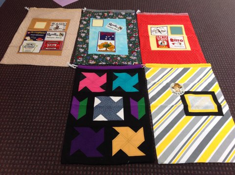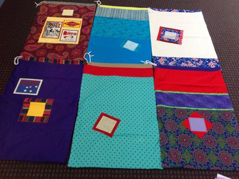Prior to Anzac Day, our President suggested making Aussie Hero Laundry bags on Anzac Day which of course fell on a Tuesday. That very same day, we were given Aussie icon fabrics which of course were perfect to jazz up the bags. That resulted in 18 bags and after sorting more fabrics not suitable for patchwork quilts, end result being 47.