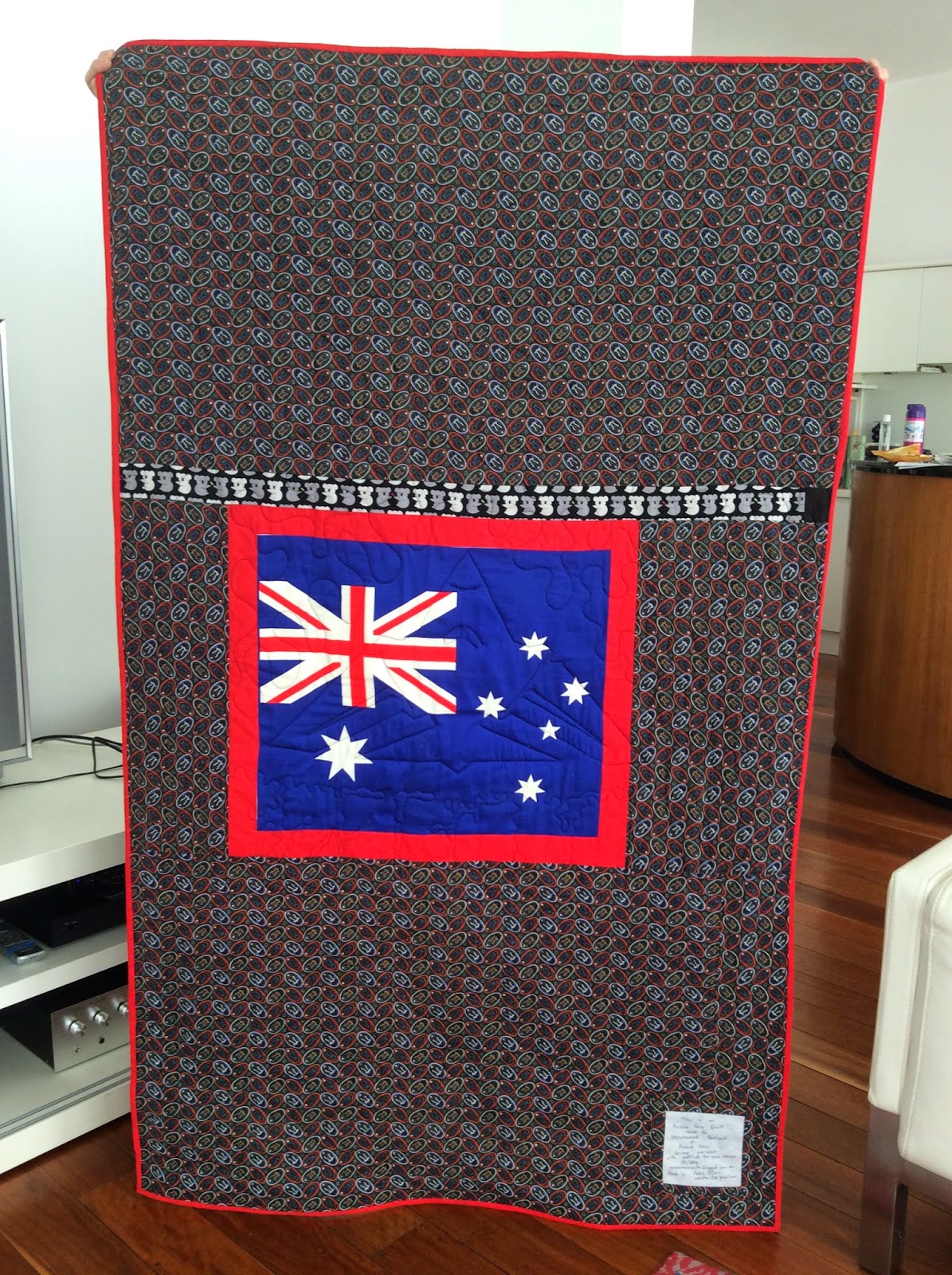Maree created this awesome engineers quilt around the embroidered badge that was made by Maureen. All the symbols on here have meanings which Engineers will recognise.