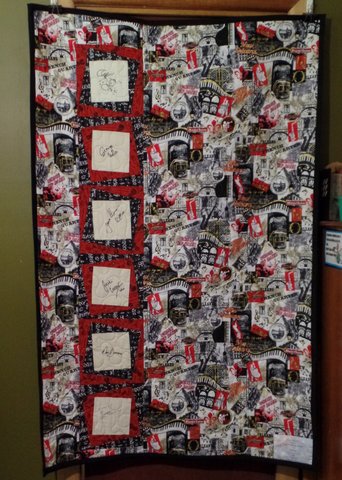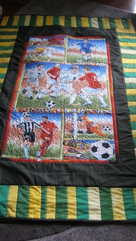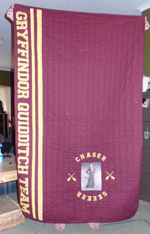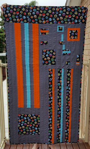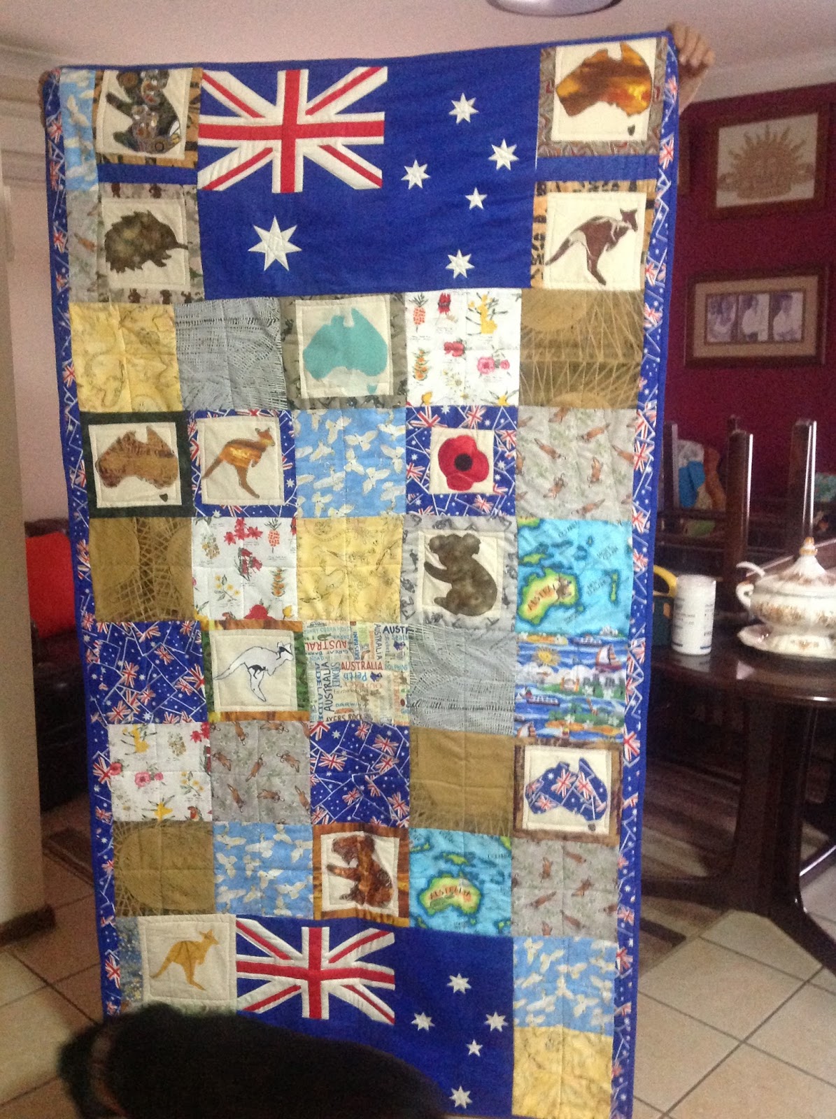 I am glad to say that the chaplain was not the only one with surprises.  I had also carried a parcel all the way from home …. obviously not as far as the Padre had but still…..  I was able to present this wonderful quilt made by Lisa N.   I won’t tell you too much about it as there is quite a good story about it and I want to wait till I have all the details to go along with it. A couple of weeks and I will write a good post about it.  Suffice to say though, that Padre Andrew had quite a grin on his face about it!  Job well done Lisa!!!  Oh, and he loved the other goodies you included too!