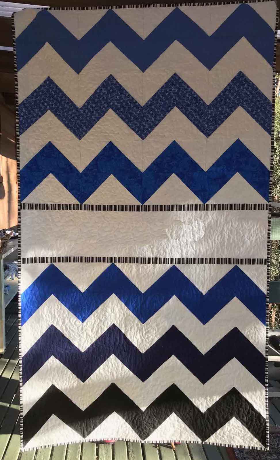 Lynn F with donated blocks, quilted by Philomena and embroideries by Kerri B