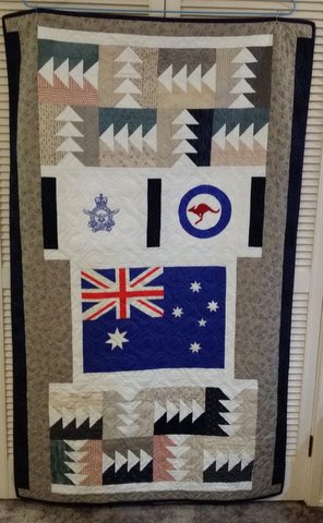 Blocks by Norma and put together by Bridget…., embroidery by Jenny W and applique by Jan-Maree