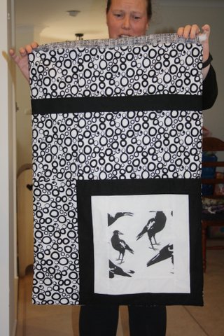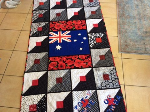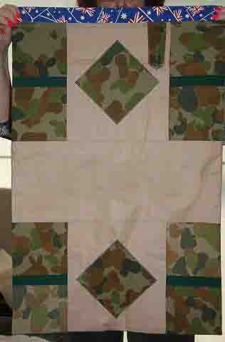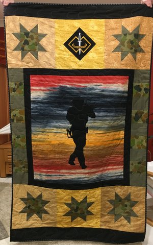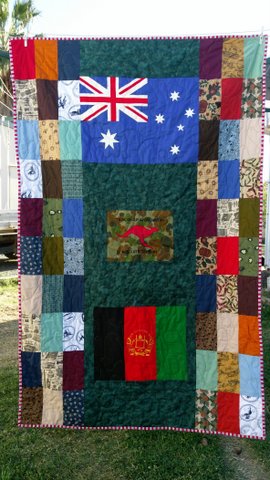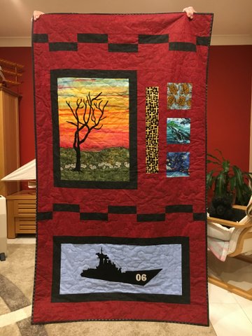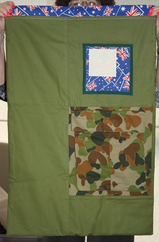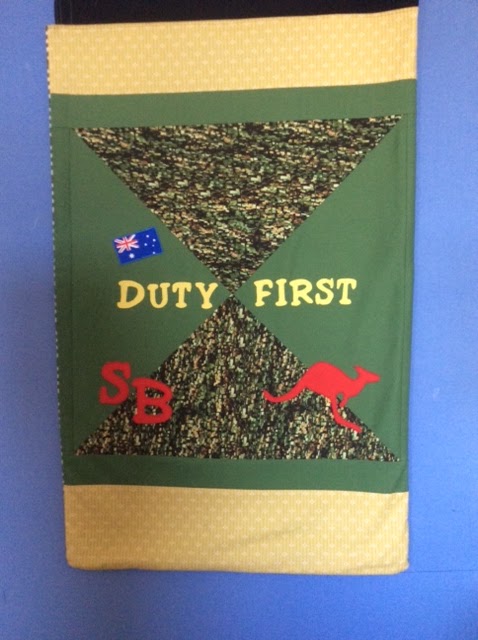 I’ve had a huge week but I don’t think that I have been half as busy as you quilters.   Jan-Maree was just describing how fantastic it was today to meet the recipients of the laundry bags for HMAS Darwin crew.  I had the pleasure of handling some of the gorgeous and cleverly designed and sewn laundry bags that were distributed today and all I can say is that you should all be very proud of the gifts. They were received with great pleasure and pride.