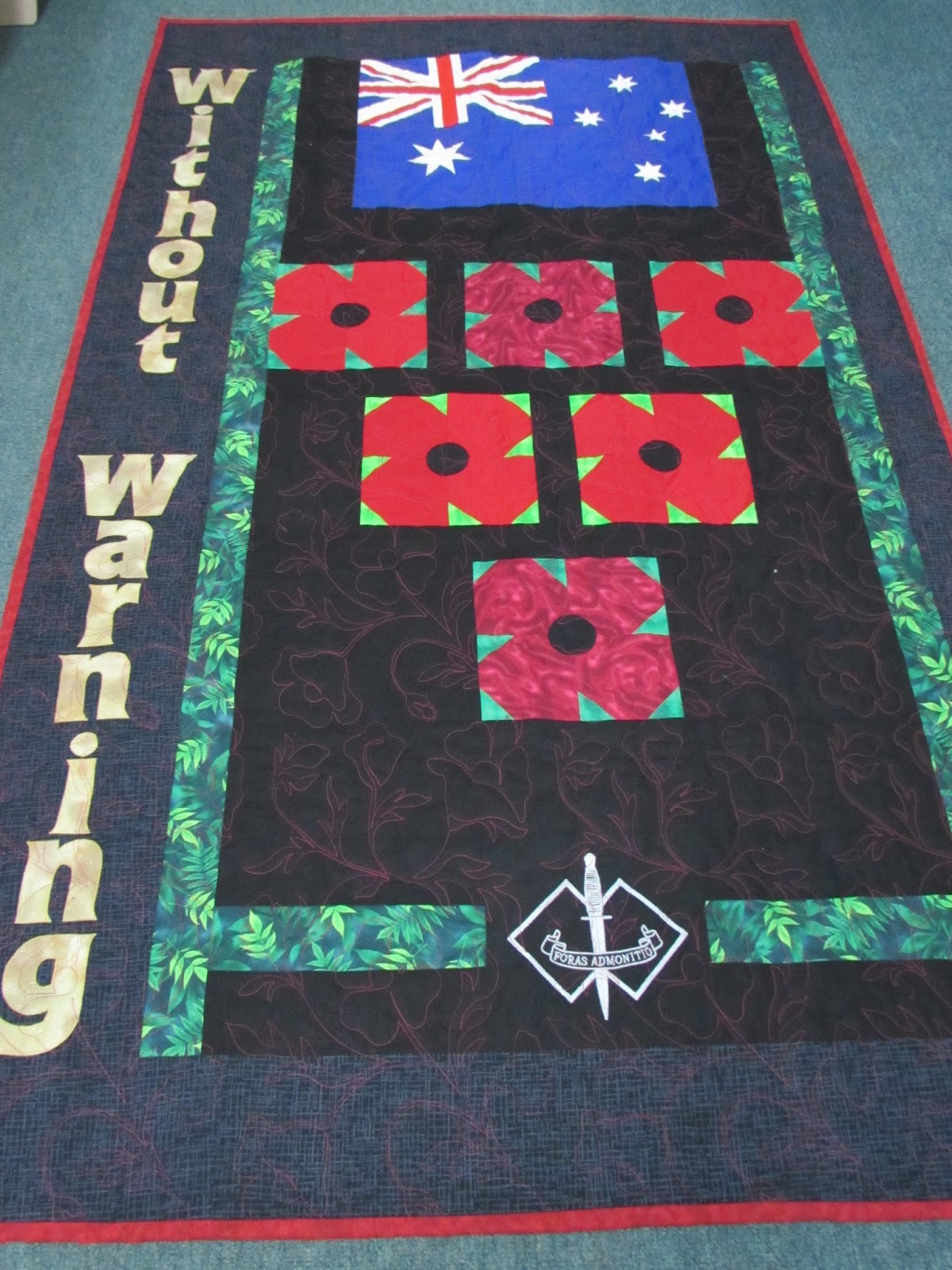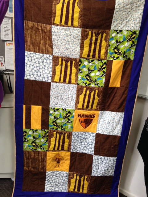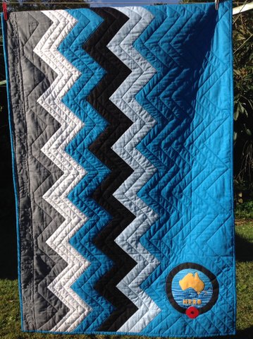 A lovely donated quilt top also quilted by the Queanbeyan CWA.