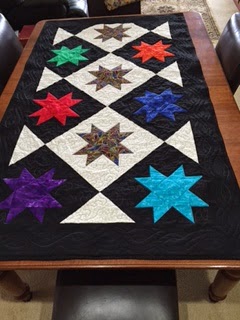 Another joint effort with the applique by me, the quilt top by Lynn and quilted by Robin.