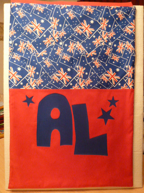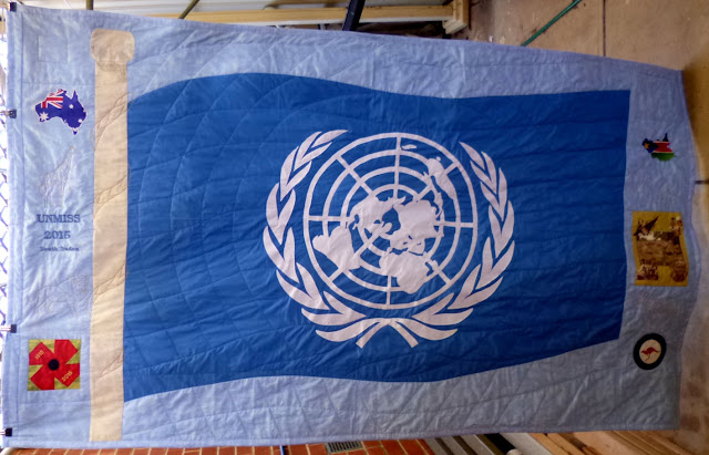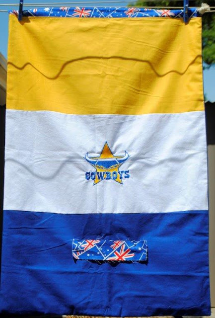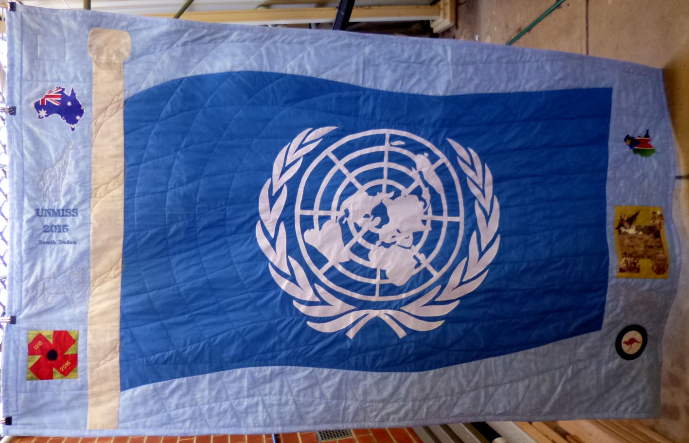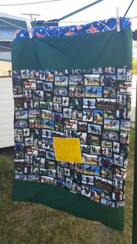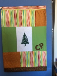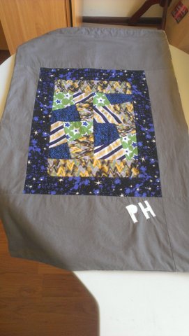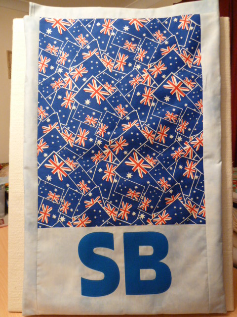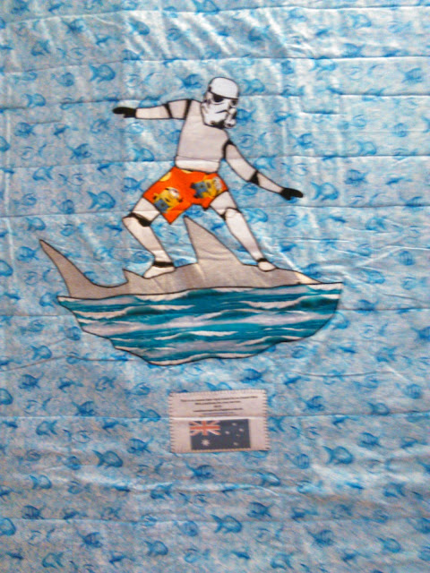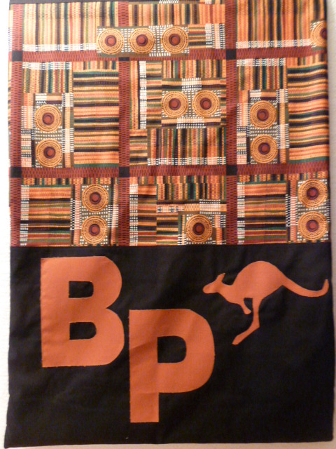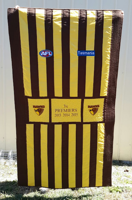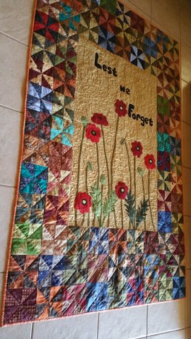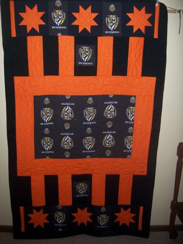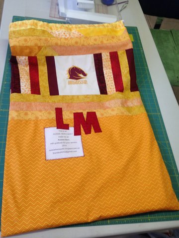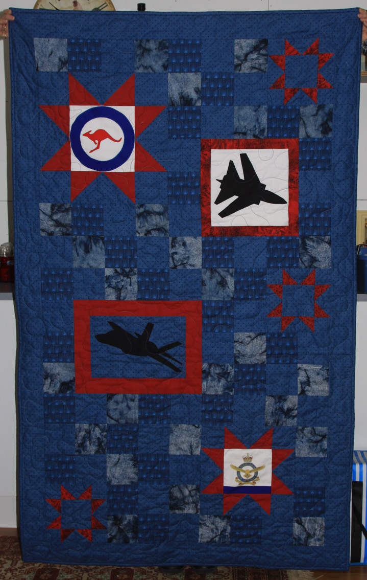 Lynn created the top, I added the badge in the middle, Leonie quilted it and Julie Ann bound it.