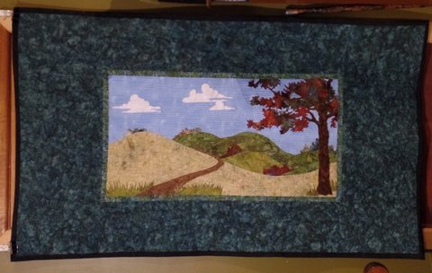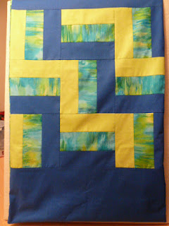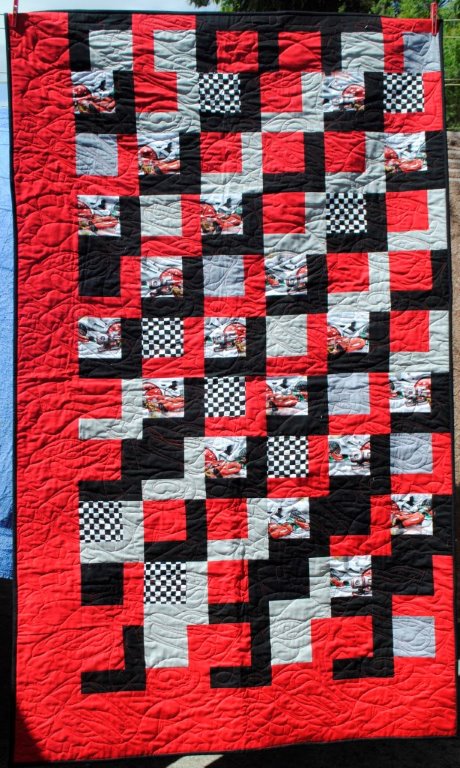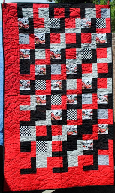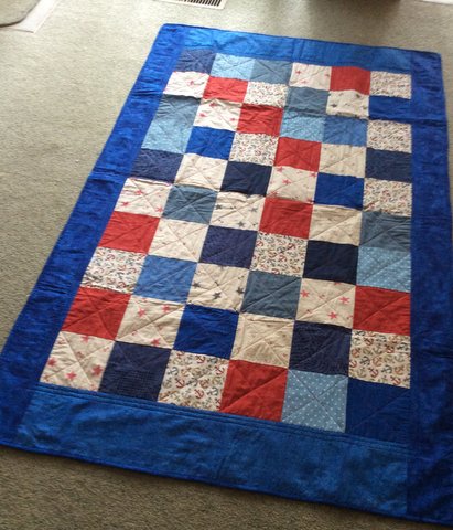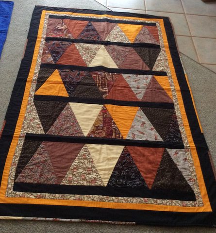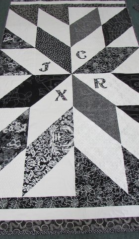 This is one of our Mystery Quilts. Love these quilts! The blocks were put together by Lynn and it was quilted and bound by Tess.