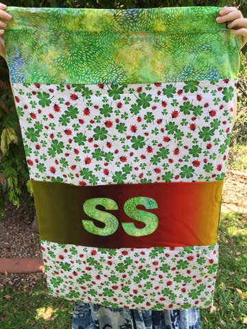 How do you like them BOMs! Look great don’t they. A little bit of applique from me and some creative piecing from Rachel and Helen W and quilted and bound by Lisa N