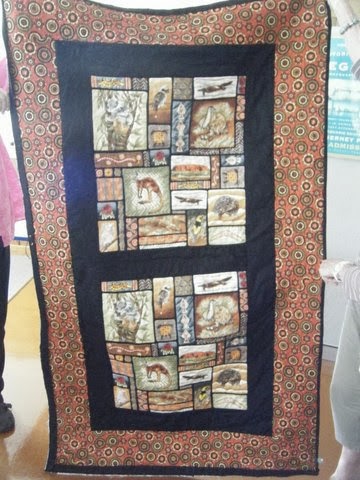 Fiona made this quilt and there is something a little special about it. Some of you might remember that last Christmas those who came to our Aussie Heroes Dinner were given a piece of fabric that some thought was ugly (which is why they were given it!) and the challenge was issued to make a block with it. There is still plenty of that fabric leftover and Fiona put some to good use in this quilt. It is the dark coloured sashing and if you didn’t know what it was you would never pick it! Love it!