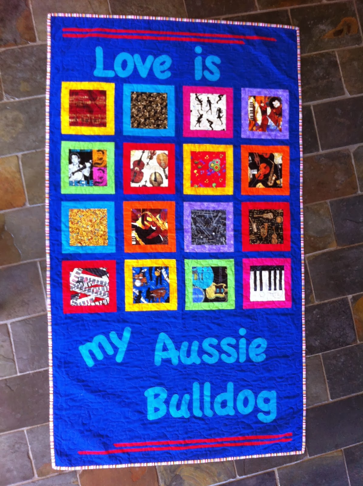 Cut out by me and sewn by girls at one of our sewing days.. I added the Rising Sun and then Belinda quilted it with Kangaroos