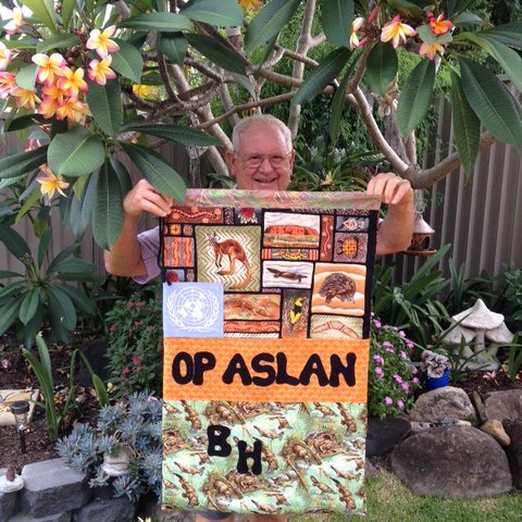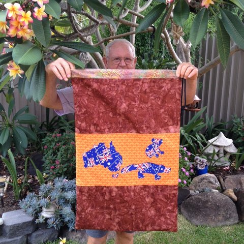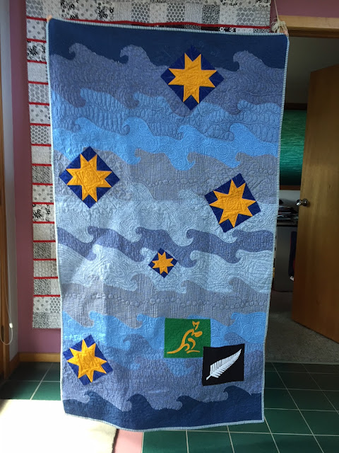 BOMs top by Ange H, quilted by Lynne V and embroidery by Kay W