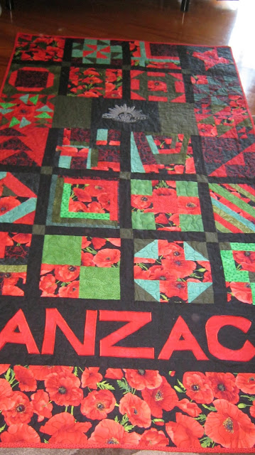 BOM blocks turned into a great quilt top by Bev U, quilted by Philomena