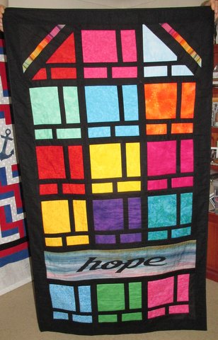 The following four quilts, in case you missed the post, were made by Lynn and her group of Mystery Quilt ladies and now hang in the small upstairs chapel in Kabul. Aren’t they gorgeous??