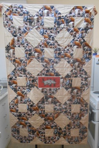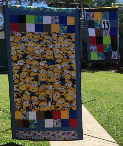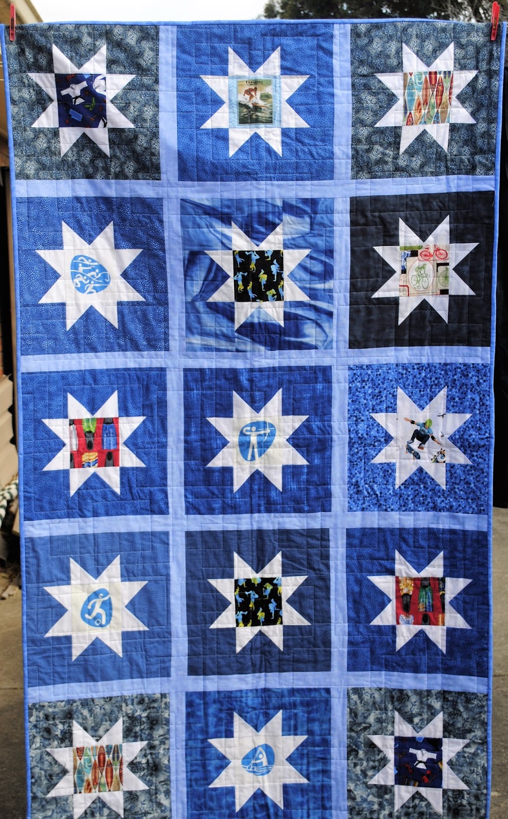 What a great use of BOM blocks, pieced by Helen C and quilted by Lisa N