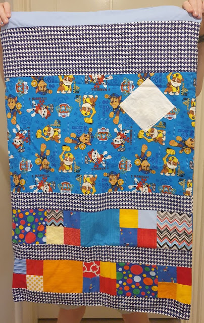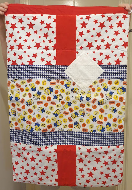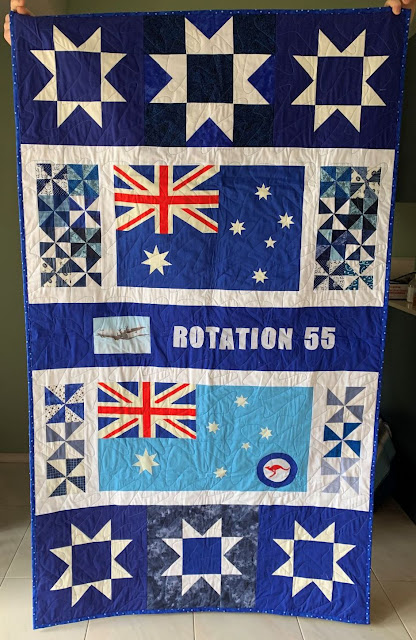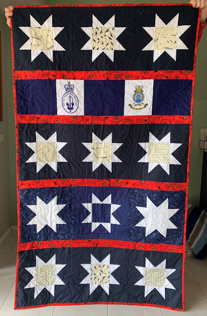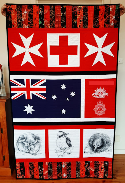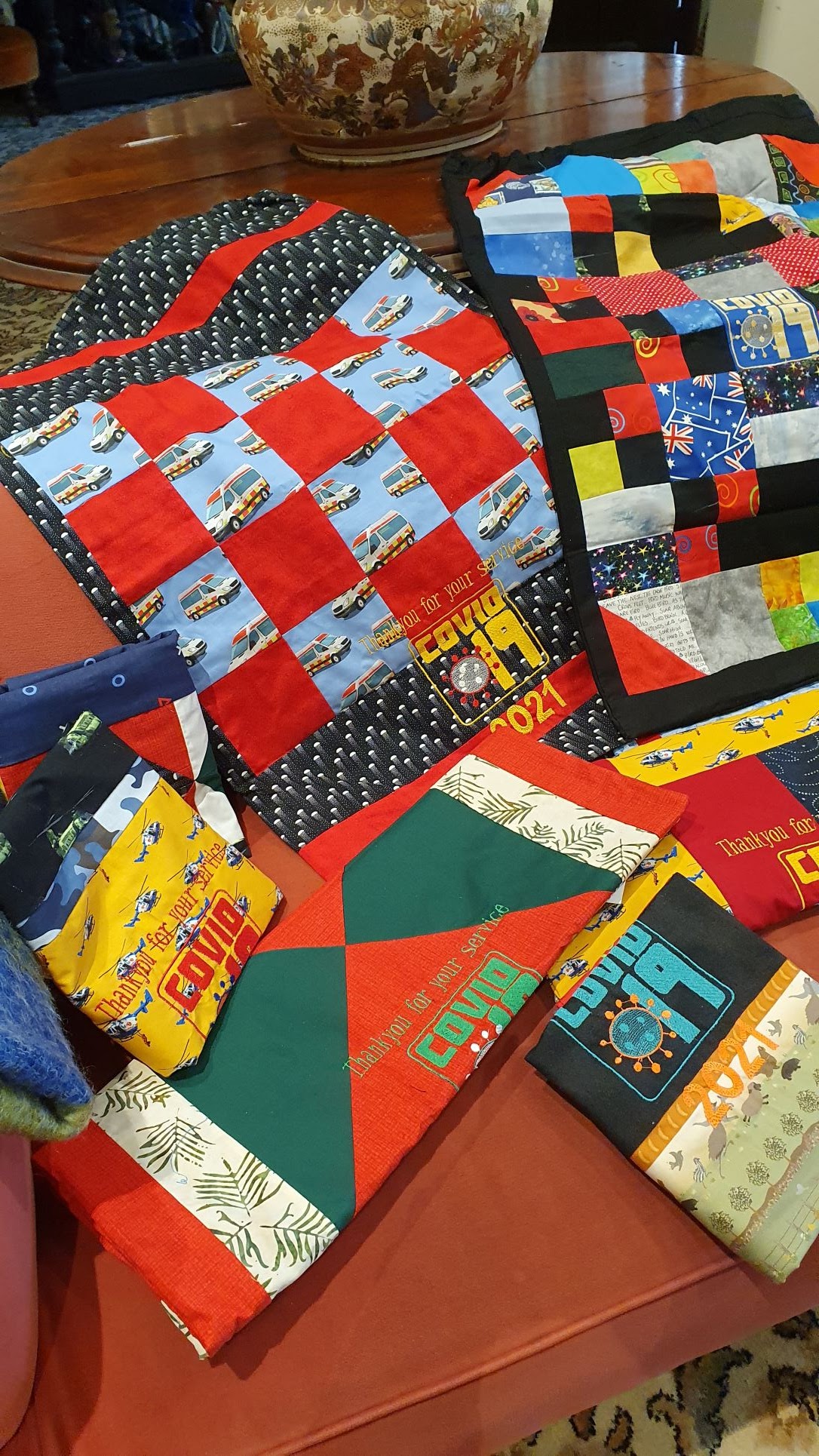 Lynn F with donated blocks, embroidery by Kerri B and quilted by Philomena