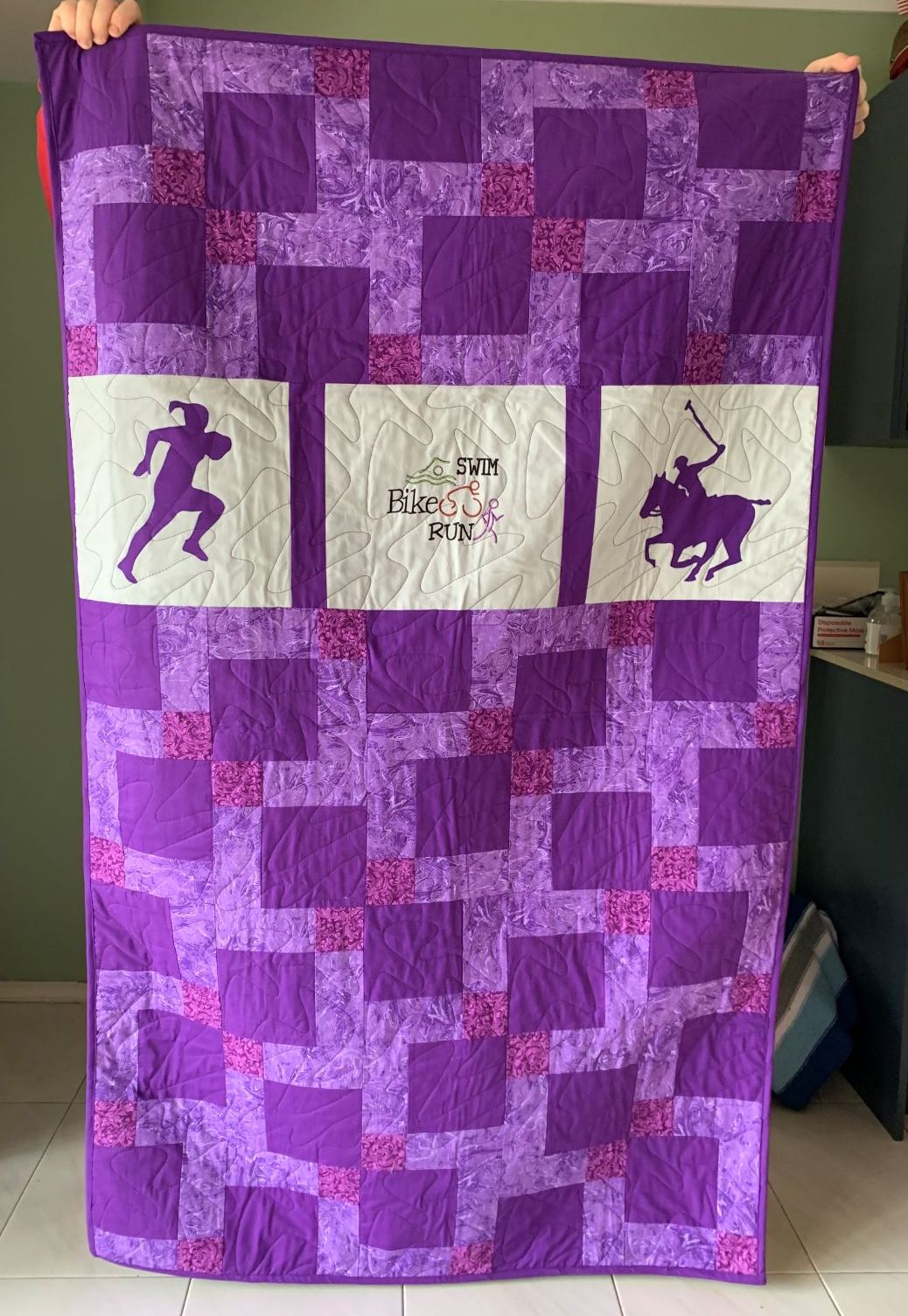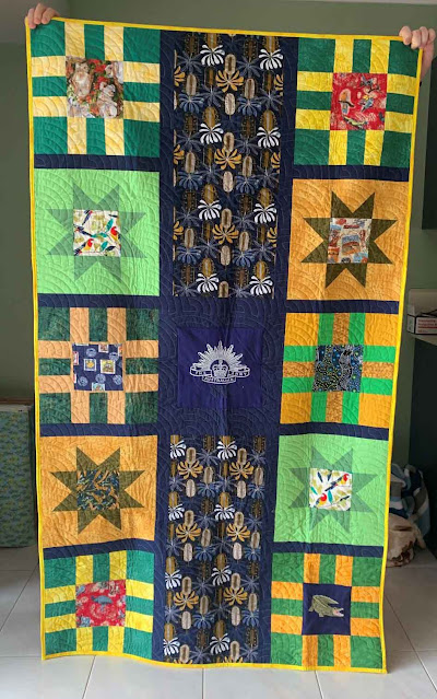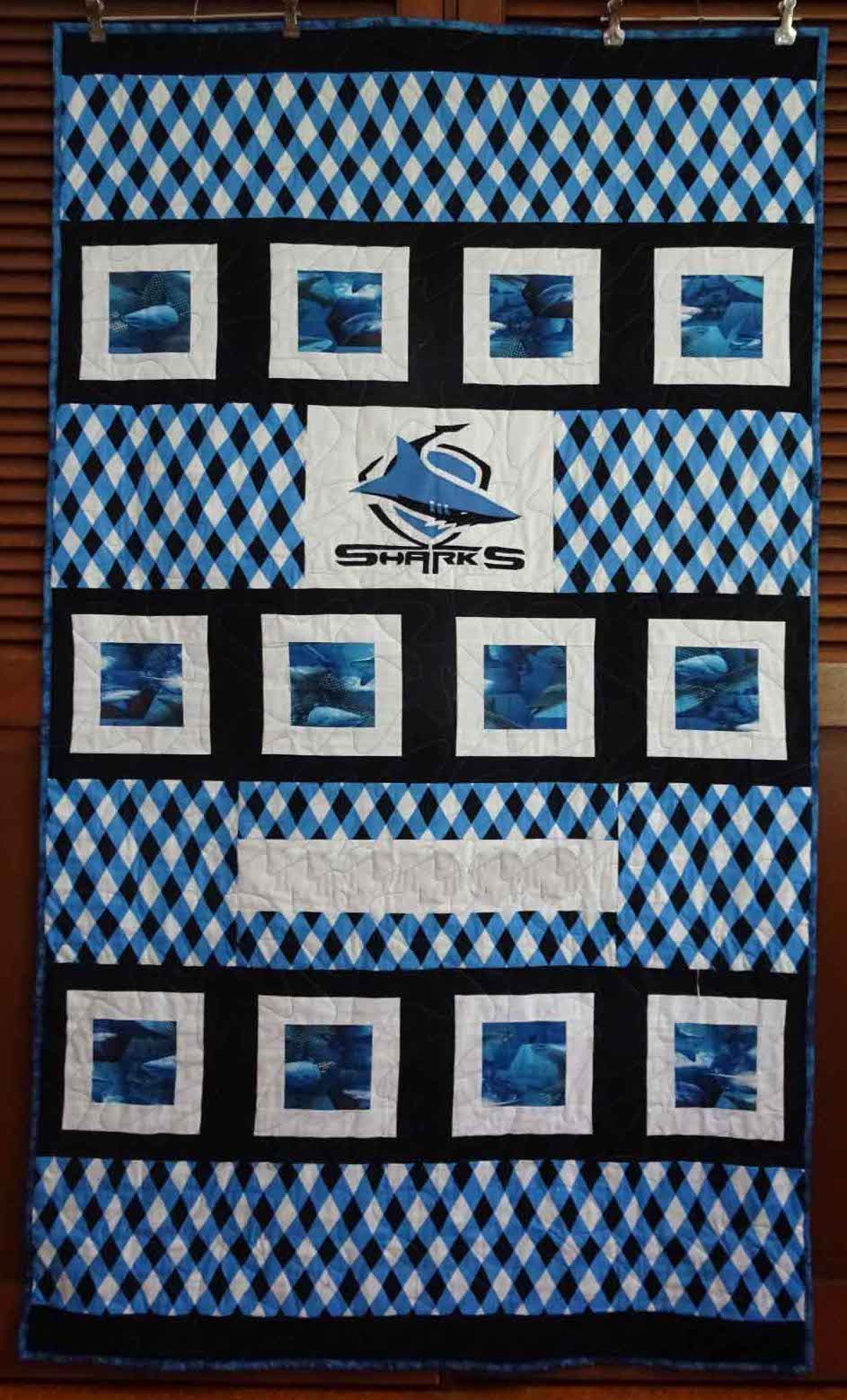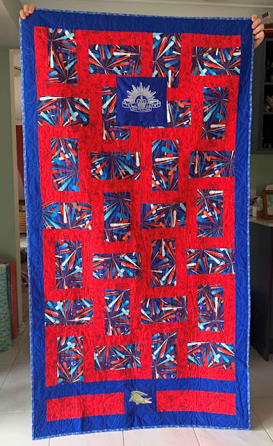 Crest emb by Kerri B, crocs emb by Su J quilt by Wendy F and mystery group, quilted by Alison