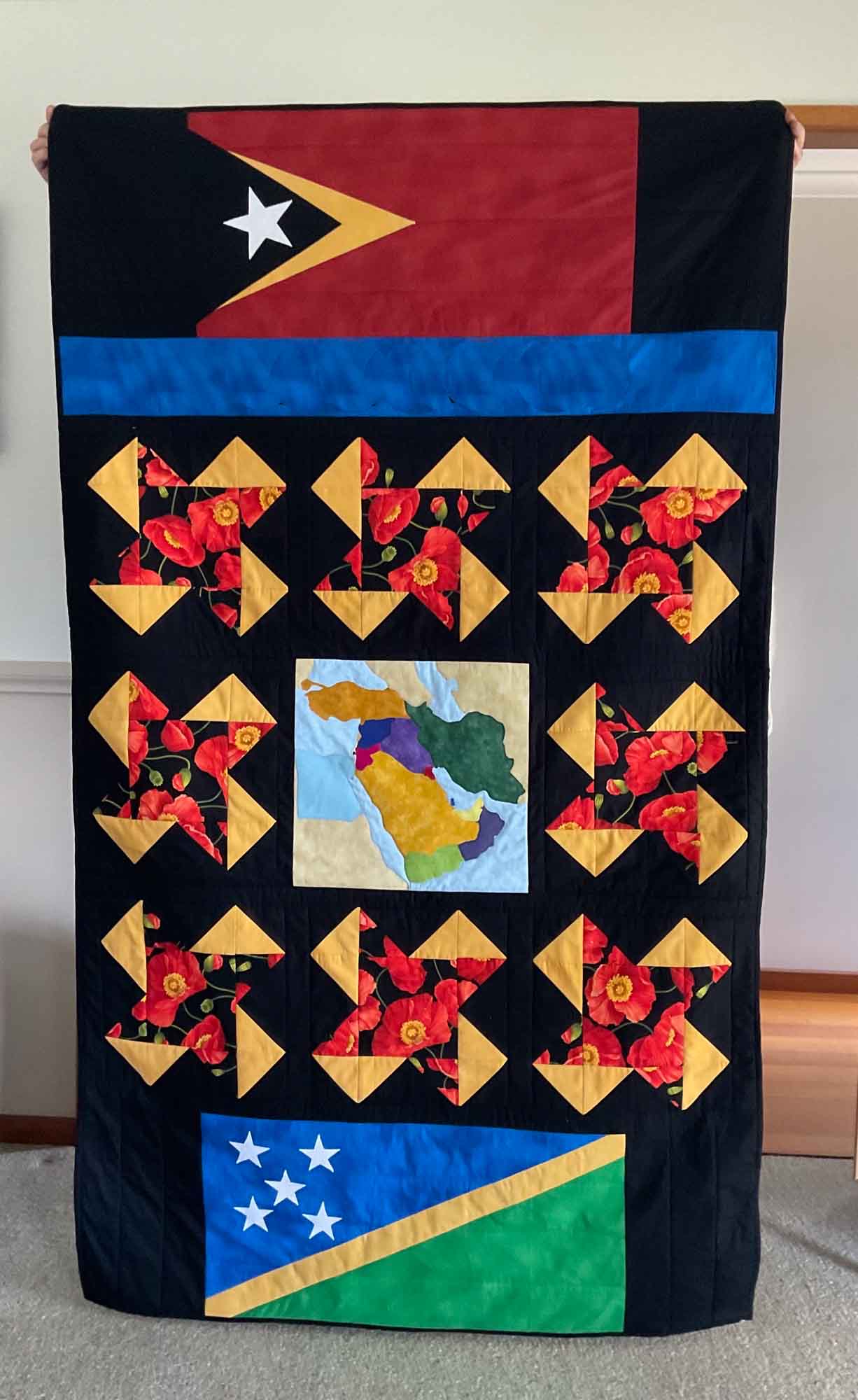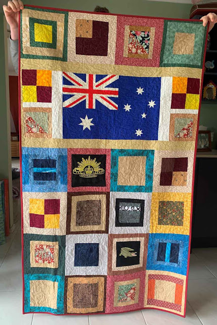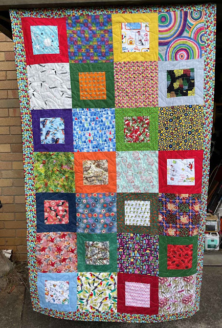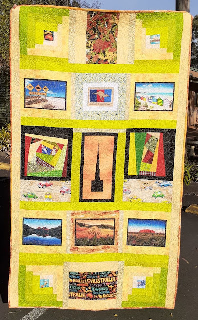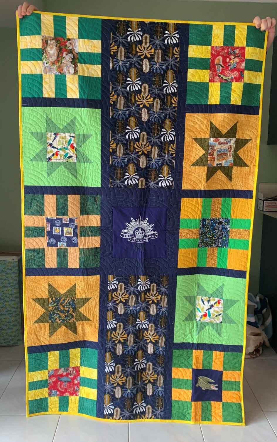 quilt by Lynn F with blocks by Dorothy C, quilted by Philomena and embroidery by Kerri