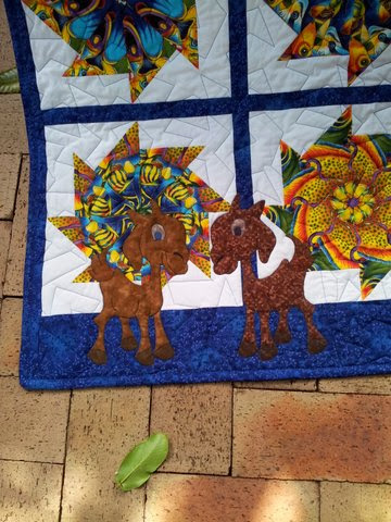 And lastly this beauty from Su – note the one quilt Su swore she would NEVER make was an Adelaide Crows Quilt but she received a request she could not refuse!  LOL  I told her that her halo was not only shining, it was glowing red, blue and yellow.  She was not impressed!  🙂