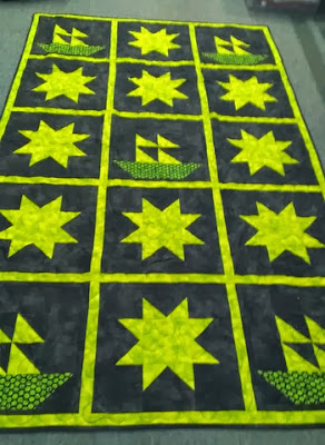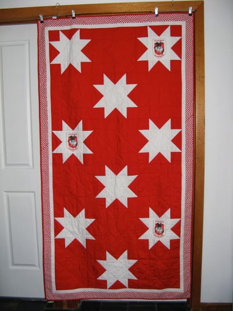 And lastly this beauty from Su – note the one quilt Su swore she would NEVER make was an Adelaide Crows Quilt but she received a request she could not refuse!  LOL  I told her that her halo was not only shining, it was glowing red, blue and yellow.  She was not impressed!  🙂