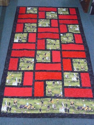 Sandra and Lorraine are responsible for this Wounded Warrior Quilt. These two have been friends for years. Sandra credits Lorraine for saving her life when her Vietnam Veteran husband passed away in years gone by. Sandra has been able to repay the favour more recently when Lorraine was diagnosed with cancer. Lorraine actually had a bunch of these hand made panels and was about to throw them out until Sandra found out about them. There will be more of these lovely panels featured in quilts to come.