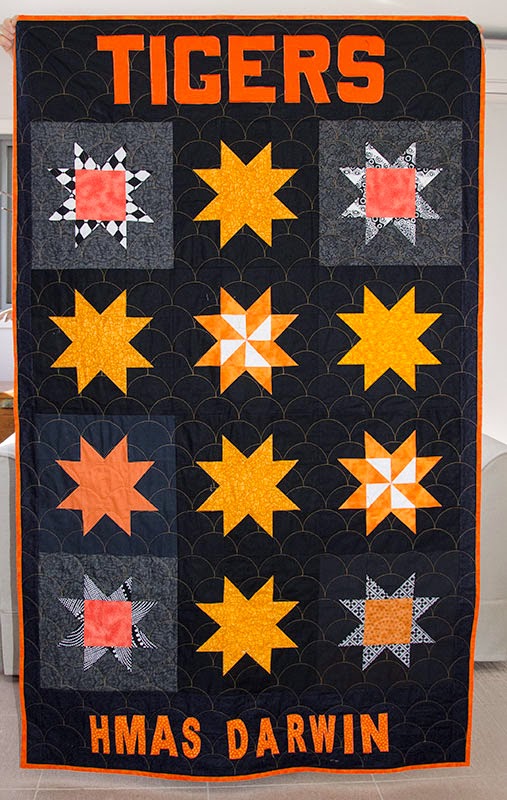 One star from each of the Tigers Mystery Quilts was saved and sent to Joan so that she could make up some matching laundry bags. Thanks to Cher for the Tiger fabric!