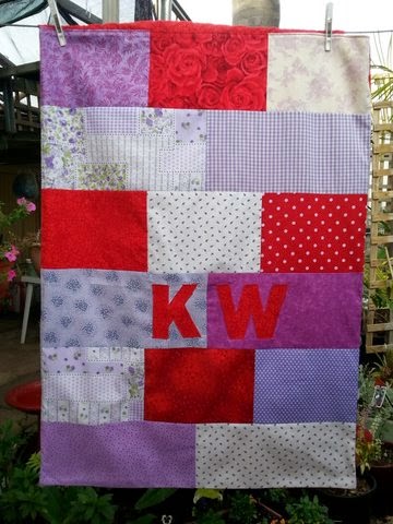 This next quilt was completed in March when we had a pot luck dinner. I asked everyone to bring a strip of bright floral fabric and during the evening we put the quilt top together. I had asked Evelyn in advance if she would applique the name on her strip and this is the result. How simple is this quilt??? And yet it is so bright and cheery, so warm and happy, and absolutely stitched with love, and it will always be one of my favourites!