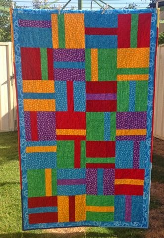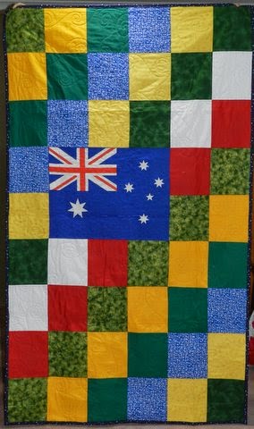 Another of Rita’s Quilt top in a day efforts for a fellow who wants to pay homage to his heritage – Brazilian, Welsh and Australian – the colours of all three flags included in this quilt