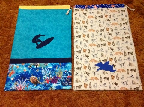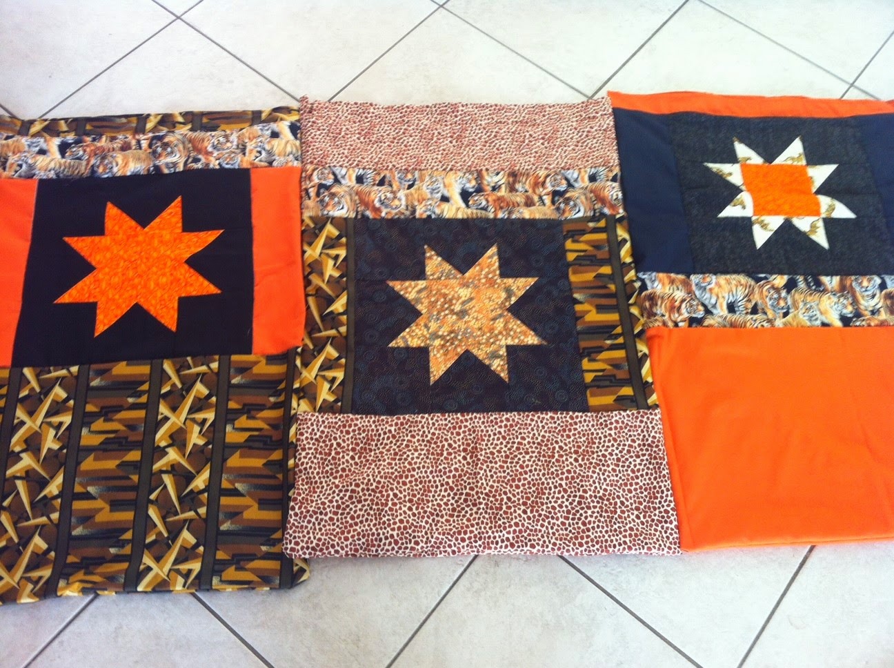 One star from each of the Tigers Mystery Quilts was saved and sent to Joan so that she could make up some matching laundry bags. Thanks to Cher for the Tiger fabric!