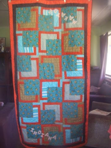 Another quilt top by Lynn using a strip made by Coral and Quilted by Robin and Evelyn.